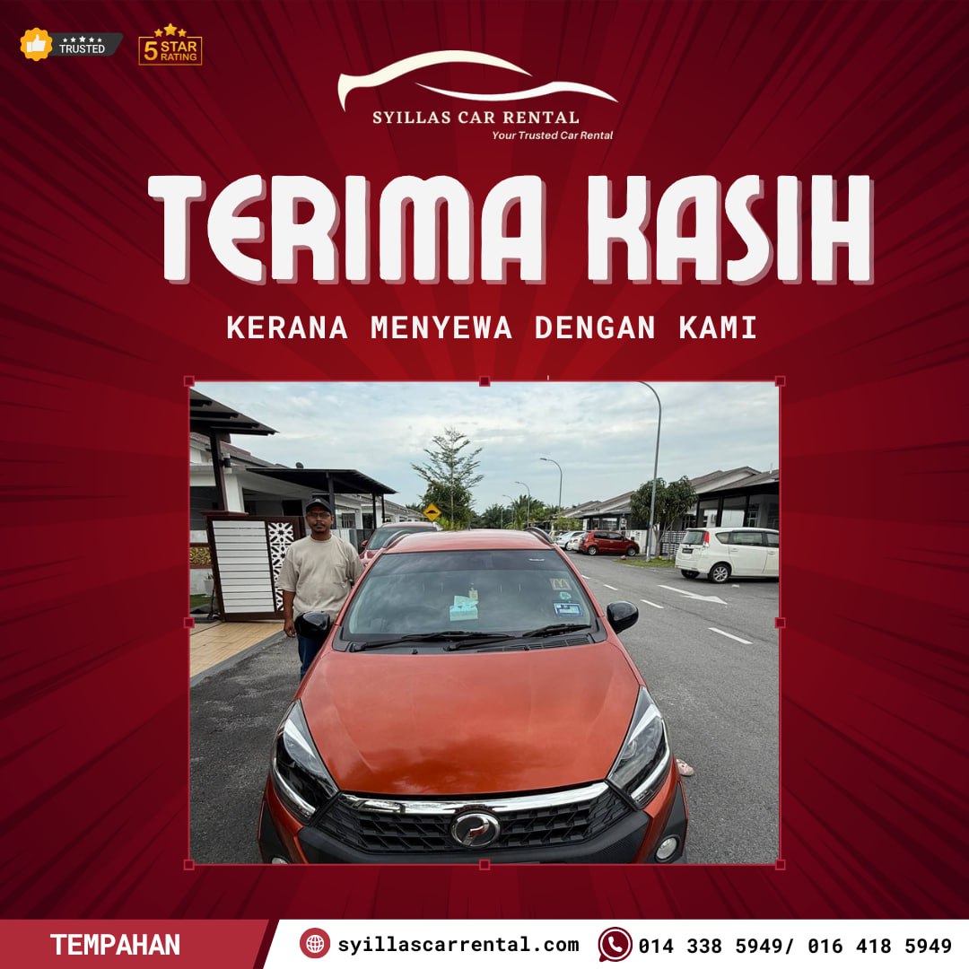 Jom jadikan perjalanan anda lebih mudah dengan Syillas Car Rental! Tempah sekarang dan nikmati perkhidmatan kereta sewa yang berpatutan.